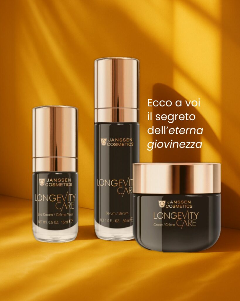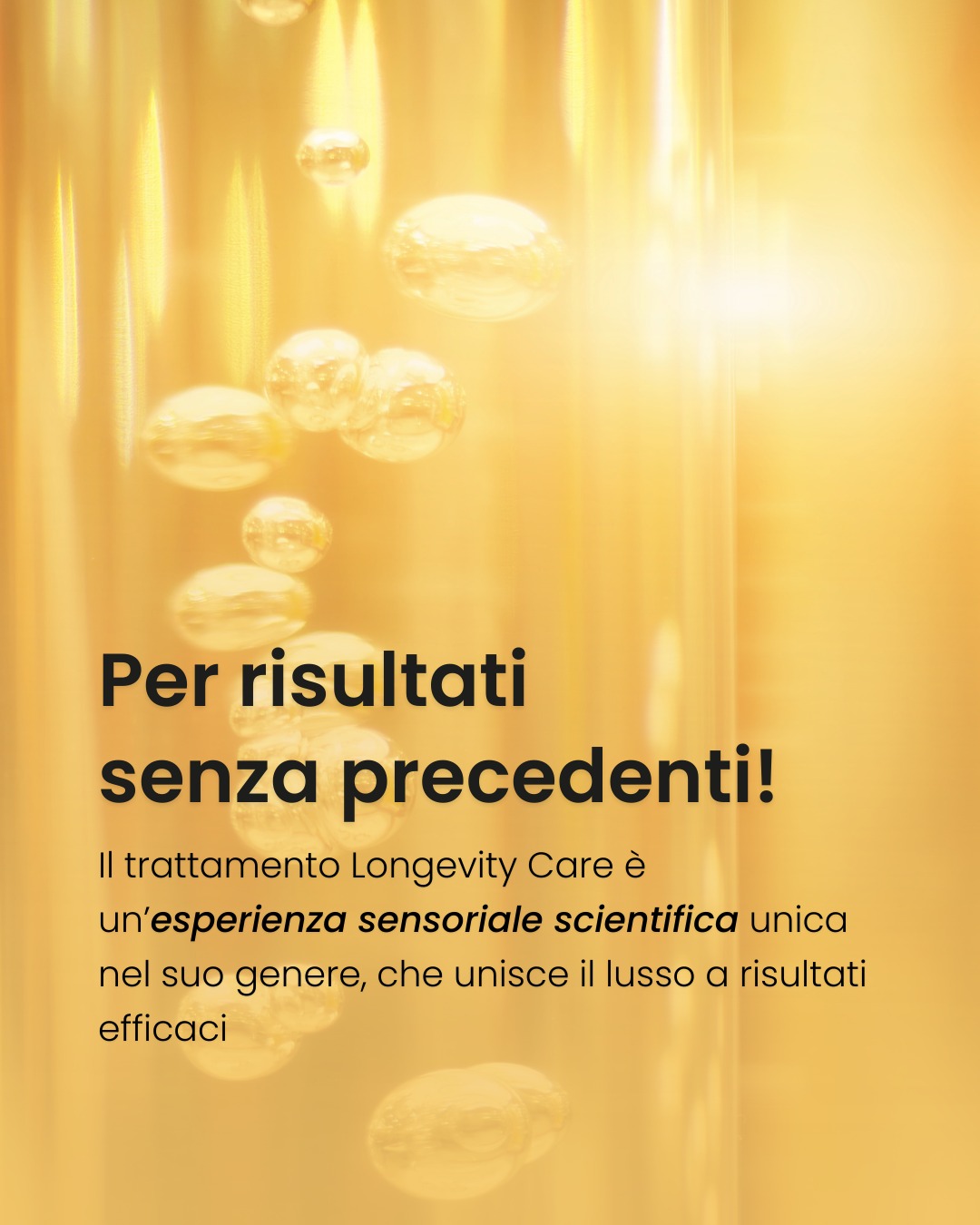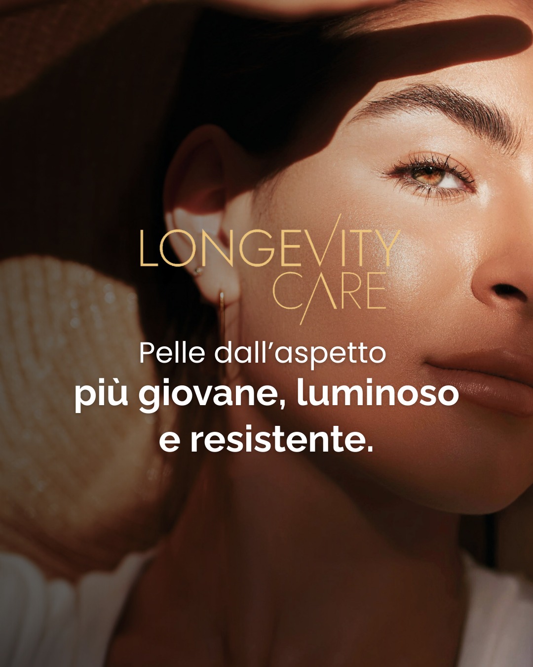 Longevity Care è una linea anti-invecchiamento che mira a rallentare i segni del tempo stimolando i geni della longevità Klotho e Sirt. Contiene quattro attivi chiave (Clotho, Ashwagandna, Resveratrolo ed Evergreen) che favoriscono la rigenerazione cellulare, il metabolismo e la protezione dallo stress ossidativo. Le texture lussuose e la fragranza delicata donano alla pelle resistenza, luminosità e vitalità.